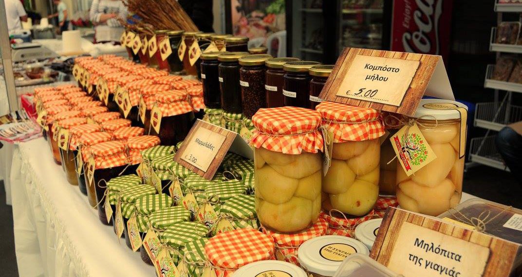 -Λαϊκή αγορά με μήλα φιαφόρων ποικιλιών, αχλαδόμηλα, εδέσματα και ποτά από μήλο και άλλα παραδοσιακά προίόντα.
