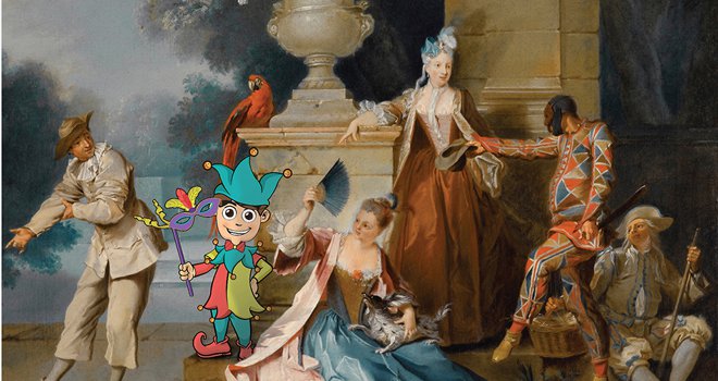 Ο "Πιερότος" και ο "Αρλεκίνος" του Jean-Baptiste Oudry και οι Βενετσιάνες κυρίες του Eugéne Lami -από τα αντίστοιχα έργα της Συλλογής του Παρισιού- θα παρουσιάσουν στα παιδιά τον κόσμο της Τέχνης και του Ευρωπαϊκού καρναβαλιού του 18ου αιώνα. Οι μικροί μας φίλοι θα μάθουν πολλά για την εξέλιξη της παράδοσης του Βενετσιάνικου καρναβαλιού και του Ιταλικού θεάτρου, Comedia dell’Arte και στη συνέχεια θα φιλοτεχνήσουν τις δικές τους μοναδικές και εντυπωσιακές Βενετσιάνικες μάσκες, χρησιμοποιώντας διαφορετικά υλικά και καλλιεργώντας δημιουργικά τη φαντασία τους.
