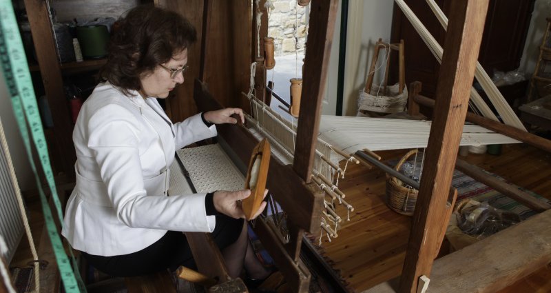 Η στενή σχέση της υφαντικής με την ιστορία και τον πολιτισμό του τόπου, την έκαναν να την αγαπήσει, να τη μελετήσει και να τη χρησιμοποιήσει όχι μόνο για αντικείμενα που έχουν άμεση σχέση με τα παραδοσιακά υφαντά αλλά και για εντελώς σύγχρονα έργα. Ο αργαλειός έγινε πράγματι ένα εργαλείο μέσω του οποίου εκφράζεται. Μαζί και με τη ζωγραφική, την οποία επίσης αγαπά και με την οποία επίσης καταπιάνεται, δημιουργεί μοναδικά έργα τέχνης από υφαντά, που αποτελούν ένα ιδιόμορφο και αξιοπρόσεκτο πάντρεμα τεχνοτροπιών.