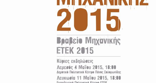 Η τελετή εντάσσεται στα πλαίσια των εκδηλώσεων "Ημέρες Μηχανικής 2015", που διοργανώνει το ΕΤΕΚ (Μάρτιο-Μάιο 2015).