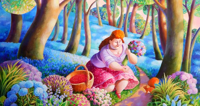 Υπάρχει τόση ομορφιά οργάνωση ευτυχία και ανεμελιά στην θεματογραφία της Βαρελλά όπου η φύση ευρίσκεται πάντοτε στην πιο καλή φάση, πάντοτε ανθισμένη και πράσινη με ανθρώπους που ζουν και κινούνται μέσα σ’ αυτήν γεμάτοι χαρά και ξεγνοιασιά.