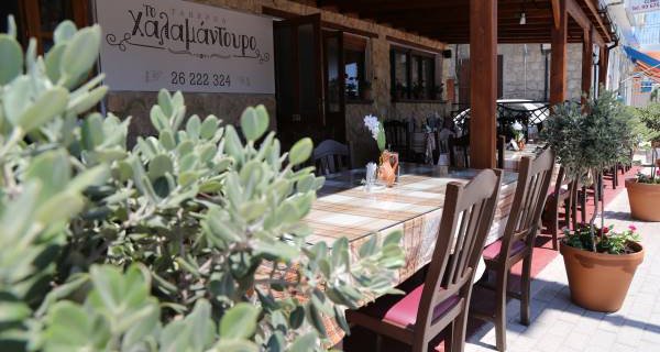 Ο ιδιοκτήτης Πανίκος και τα τρία του παιδιά, που γιόμισαν το κέντρο της πόλης με γνώριμα αρώματα και σπιτικές γεύσεις που σε διακτινίζουν σε χωριό άλλων εποχών. Οι σχάρες, οι φούρνοι και οι κατσαρόλες στο Χαλαμάντουρο παινεύονται για την παρασκευή άκρως αυθεντικών, κυπριακών εδεσμάτων, είτε υπό μορφή μερίδας είτε μεζεδοτσιμπημάτων ή προκαθορισμένου μεζέ (μεζές σχάρας €13 & full μεζές €17).
