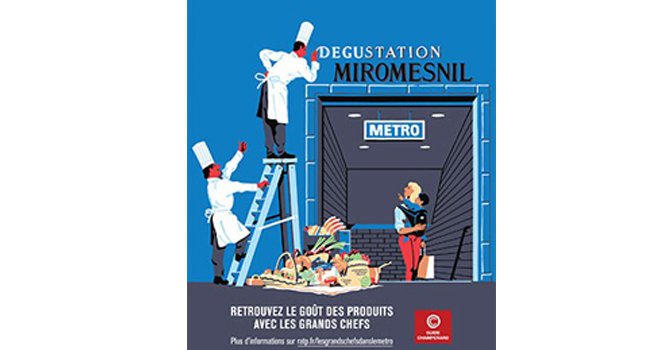 H RATP, σε συνεργασία με το Guide Champérard, προσκαλεί για έβδομη συνεχή χρονιά, καταξιωμένους chefs στο μετρό του Παρισιού, το Miromesnil (γραμμές 9 και 13), από τις 3 έως 5 Νοεμβρίου 2015.