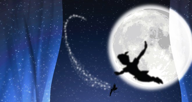 Ο Πήτερ Παν πετάει στη χώρα του Ποτέ, όπου ο χρόνος έχει σταματήσει και τα όνειρα γίνονται πραγματικότητα. Παρέα μαζί του η Τίγκερμπελ, η Γουέντι και ο Κάπταιν Χουκ. Η πάλη του καλού με το κακό. Η πραγματική έννοια της φιλίας και η αθωότητα απέναντι στη ψευτιά και την υποκρισία. Η σημασία της οικογενειακής θαλπωρής στη ζωή των παιδιών. Η ανάγκη για φαντασία και όνειρο γίνονται ένα όμορφο ταξίδι με όλους εμάς συνεπιβάτες! Με λίγη νεραϊδόσκονη και το ταξίδι ξεκινα.