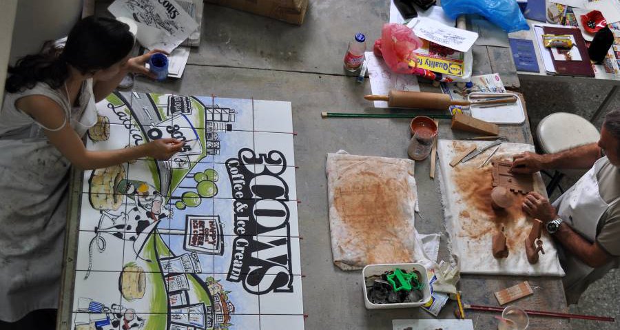 Εστίασε την προσοχή της πάνω στα κεραμικά πλακάκια που μπορούν να χρησιμοποιηθούν σε κουζίνες, πατώματα, μπάνια, πισίνες, αλλά και σε άλλες επισμαλτομένες επιφάνειες, όπως πιάτα, φλιτζάνια, πιάτα και μπολ. ‘Το σχέδιο μπορεί να είναι ένας ζωγραφικός πίνακας που θα γίνει με πινέλο στα κεραμικά (tile mural) ή να είναι ένα μοτίβο που θα τυπωθεί στο πλακάκι με μεταξοτυπία’, μας λέει χαρακτηριστικά.