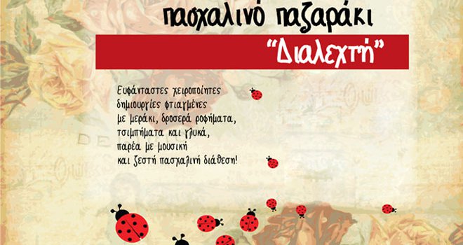 Ο Απρίλης είναι ο μήνας ενημέρωσης για τον αυτισμό. Στα πλαίσια του μήνα ενημέρωσης για τον αυτισμό, ο Σύνδεσμος για Άτομα με Αυτισμό Κύπρου συμμετέχει στο Πασχαλινό Παζαράκι "Διαλεχτή". Σκοπός είναι η αναζωογόνηση της περιοχής Χρυσαλινιώτισσας και η στήριξη του Συνδέσμου αλλά και της εγχώριας χειροποίητης δημιουργίας. Στο παζαράκι θα διατίθενται προς πώληση σπιτίσια ροφήματα, τσιμπήματα, vegan bars και γλυκά, προϊόντα και κατασκευές για ενίσχυση του Συνδέσμου, βιβλία Κυπρίων συγγραφέων, διακοσμητικές και πασχαλινές κατασκευές, λαμπάδες, κεραμικά, κοσμήματα, δερμάτινες τσάντες, ρουχισμός, αιθέρια έλαια και άλλες ευφάνταστες χειροποίητες δημιουργίες. Μεταξύ των ωρών 15.00-17.00 θα σας συντροφεύει ζωντανή μουσική σε ρυθμούς τσέλο και όμποε. Αξίζει να αναφέρουμε πως το 20% του τέλους συμμετοχής κάθε δημιουργού θα διατεθεί προς ενίσχυση του Συνδέσμου για Άτομα με Αυτισμό Κύπρου.
