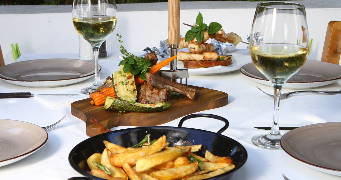 Εδώ θα φας από μεζέδες, μέχρι πολύ καλά στέικ, φρέσκο ψάρι της βάρκας, καλαμάρι στη σχάρα, ολόφρεσκα λαχανικά και άλλα πολλά καλούδια. Παρόλα αυτά, οφείλουμε να σου μιλήσουμε για τον πλούσιο μεζέ του (€17.90) που εκτός από τη σαλάτα και τα κρύα ορεκτικά, περιλαμβάνει, χαλούμι με μπέικον κρασάτο, χωριάτικο λουκάνικο, σαλιγκάρια, μανιτάρια, κολοκυθάκια με αβγά, σουβλάκι, κοτόπουλο, κουνέλι και άλλα πολλά και καταλήγει σε καφέ και γλυκό για να φύγεις πλήρως ικανοποιημένος!