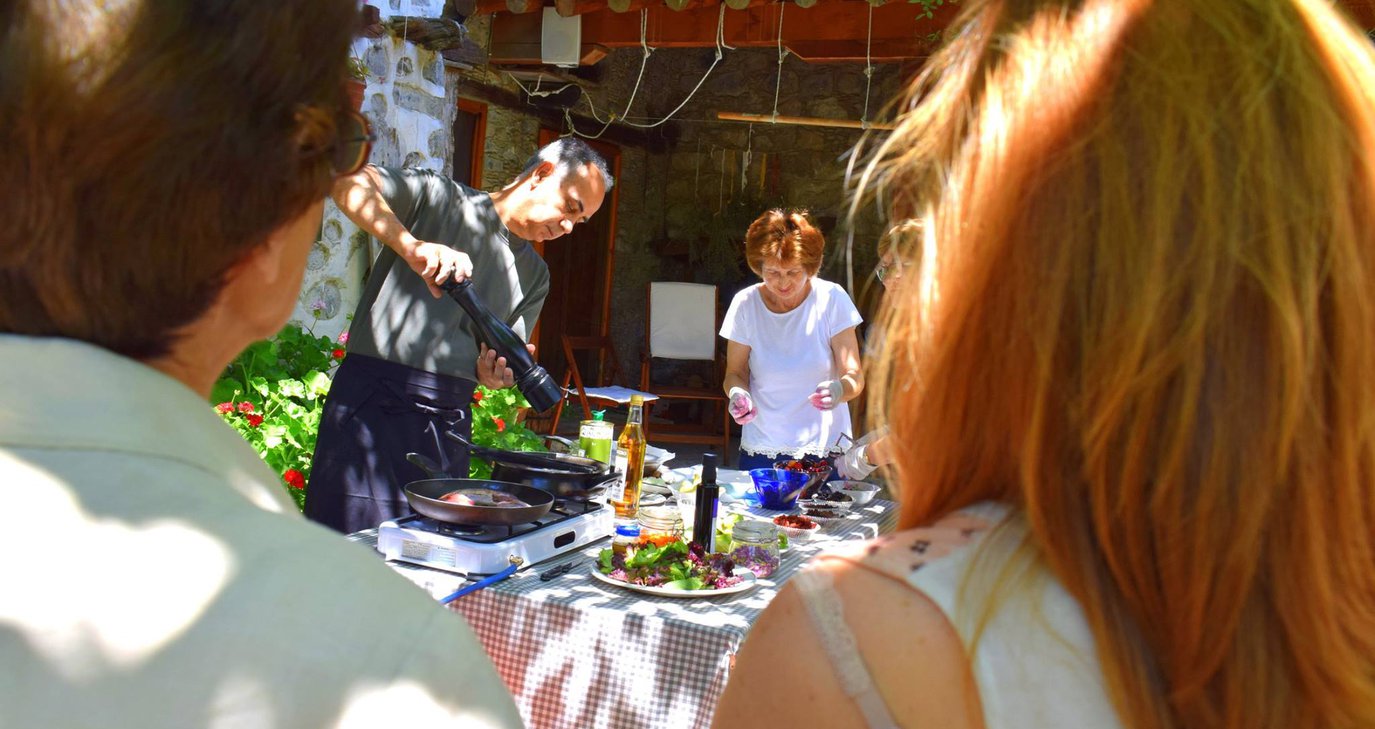 Στο πλαίσιο της Ημέρας Κερασιού που διοργάνωσε το Κοινοτικό Συμβούλιο Τριών Ελιών, ο σεφ Στέφανος παρασκεύασε διάφορες συνταγές απο κεράσια στην αυλή του Σπιτικού.