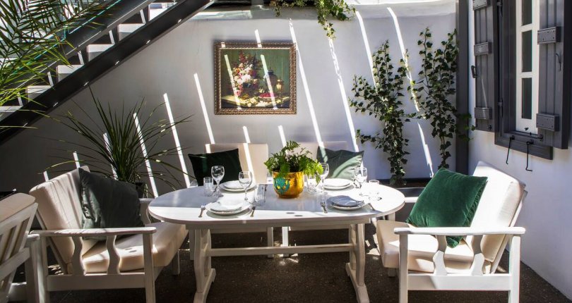 Αυτή η μυστική, καταπράσινη αυλή φαίνεται πως σύντομα θα γίνει talk of town αφού είναι ιδανική για δροσερά πρωινά και απογεύματα για χαλάρωση στις άνετες ξύλινες πολυθρόνες.
