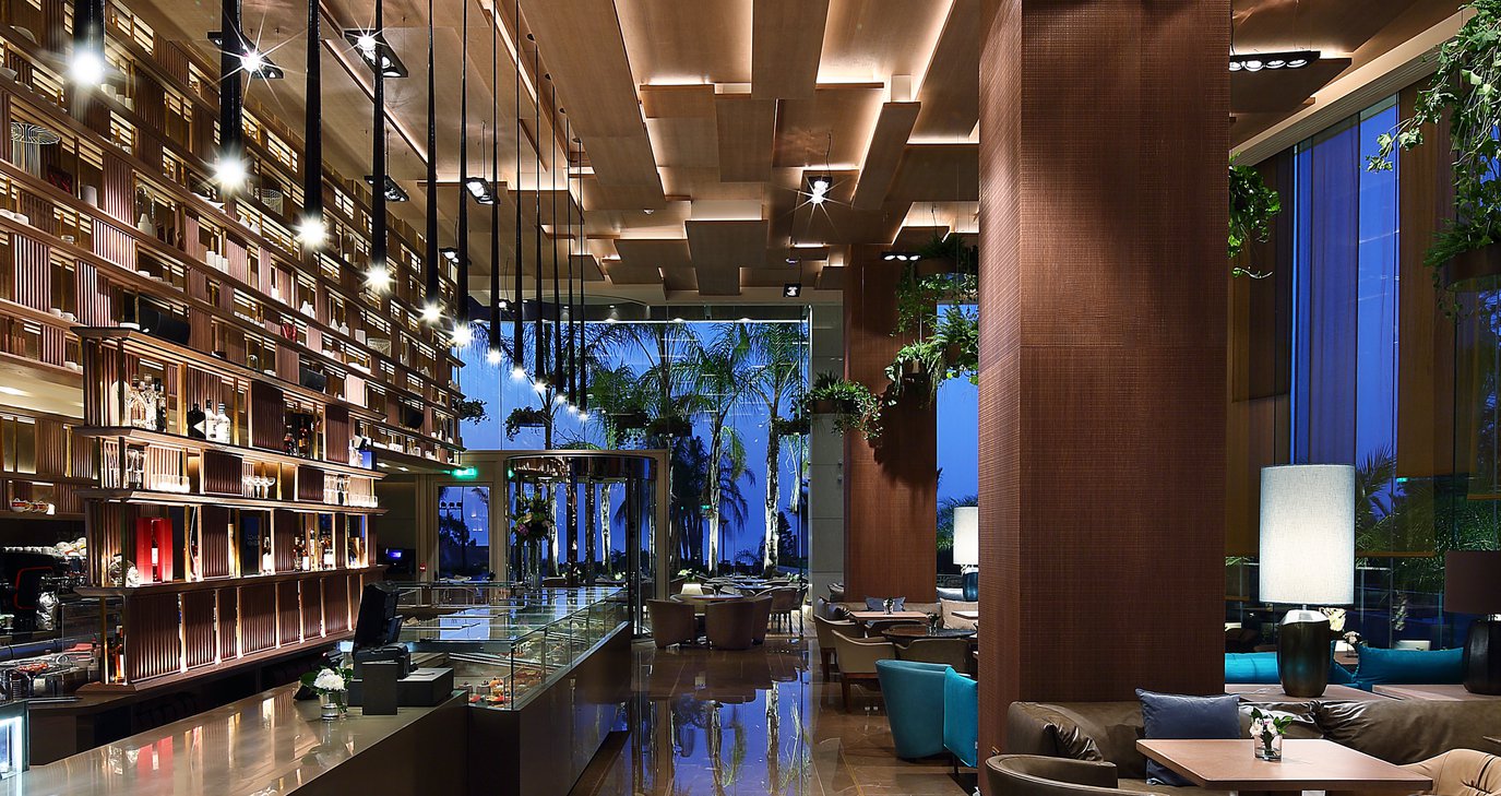 Ένα café αριστοτεχνικής αρχιτεκτονικής και διακόσμησης, απλόχωρο και ψηλοτάβανο, όμορφα βαλμένο στους ισόγειους χώρους του νεοδομημένου, δεκαώροφου πύργου, που προστέθηκε αρμονικά και λειτουργικά στους ήδη φαντασμαγορικούς χώρους του ξενοδοχειακού κολοσσού της πόλης.