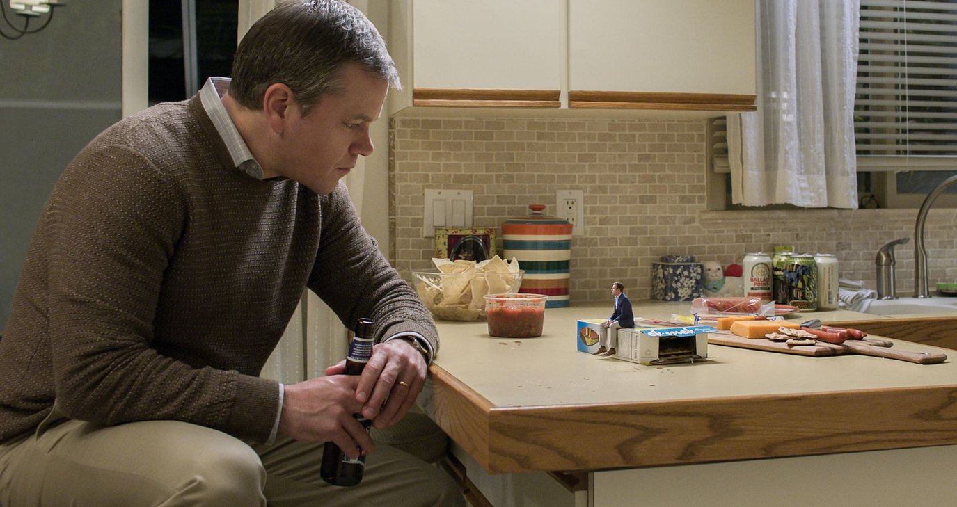 Σκεφτείτε τι θα συνέβαινε αν, σε ένα κοντινό μέλλον, οι άνθρωποι, χάρη σε έναν Νορβηγό επιστήμονα, είχαν τη δυνατότητα να συρρικνώνουν τον εαυτό τους. Έτσι, οι συρρικνωμένοι άνθρωποι θα ζούσαν σε μικρές πόλεις, θα τρέφονταν λιγότερο, θα έπιαναν λιγότερο χώρο, θα δημιουργούσαν λιγότερα σκουπίδια και γενικά η δική τους ζωή θα έκανε πολύ καλό στην ανθρωπότητα. Συνεκτιμώντας όλα αυτά τα πλεονεκτήματα του μικρόκοσμου, ο Paul (Matt Damon) αποφασίζει να συρρικνωθεί μαζί με τη σύζυγό του (Kristen Wiig) προκειμένου να μειώσουν τα τεράστια έξοδα διαβίωσης που συνεπάγεται μια ζωή σε κανονικό μέγεθος. Μόνο που μια μικρότερη σε μέγεθος κοινωνία, δεν παύει να είναι μια κανονική κοινωνία με κανονικούς (αν και μικρότερους -σε μέγεθος- ανθρώπους) και άρα δεν παύει να έχει κι αυτή τα προβλήματά της... Η νέα ταινία φαντασίας του ελληνικής καταγωγής σκηνοθέτη, Alexander Payne ('Sideways') η οποία άνοιξε το φεστιβάλ Βενετίας, εισπράττοντας μικτές κριτικές.