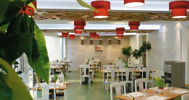 Ο ναός της κρεατοφαγίας άνοιξε στη λατρεμένη και ιστορική Πάφο, αφού το παλιό ‘Meating Place’ αποφάσισε να μετατραπεί σ’ ένα διαφορετικό meeting place, που θα ικανοποιεί τους λάτρεις του καλοψημένου κρέατος και θα διδάσκει στους υπόλοιπους πώς να μαγειρέψουν σωστά το κρέας. Αυτή η σύγχρονη ‘Ακαδημία Κρέατος’ λοιπόν, στεγάζεται σ’ ένα πανέμορφο περιβάλλον με ζωηρά χρώματα και σύγχρονη επίπλωση που σε ‘γαργαλά’ γαστρονομικά, πριν αρχίσεις ακόμα να κοιτάζεις το μενού. Πρόκειται για ένα casual αλλά πολύ περιποιημένο dinner, που έχει ως φιλοσοφία του να σερβίρει για όλη την οικογένεια, ως επί το πλείστον, κρέας στα κάρβουνα, κυπριακής και διεθνούς κουζίνας, σε πολύ προσιτές τιμές. Εδώ μπορείς να παραγγείλεις το κοκτέιλ σου, την μπίρα σου, το ποτό σου ή οποιοδήποτε ρόφημα ζητά η ψυχή σου και να το συνοδεύσεις είτε με ορεκτικό είτε με κυρίως πιάτο, είτε με τσιμπήματα. Το ‘Meat Academy’ δίνει ιδιαίτερη σημασία στα platters του, διότι μία ομάδα ανθρώπων μπορεί να χορτάσει καλά ξοδεύοντας λίγα χρήματα και δοκιμάζοντας, παράλληλα, μία ποικιλία από τις λιχουδιές του. Θα ανακαλύψεις, για παράδειγμα, κυπριακή πιατέλα με διάφορα κυπριακά εδέσματα, ελληνική πιατέλα με ελληνικά τσιμπήματα, surf and turf με θαλασσινά και κρεατικά και την πιατέλα του Ποσειδώνα με διάφορα ψαρικά και θαλασσινά. Κάνε και εσύ λοιπόν ‘εγγραφή’ στη λίστα κρατήσεων τού ‘Meat Academy’ και να είσαι σίγουρος πως θα ‘αποφοιτήσεις’ με άριστα στο μάθημα της κρεατοφαγίας!