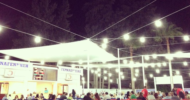 Αν έχεις περάσει πίσω από την Whispers στη Λεμεσό θα έχεις παρατηρήσει ότι έχει δημιουργηθεί ένας καλαίσθητος open air χώρος, με καραβόπανα και ρετρό φωτάκια, ο οποίος σου δίνει την αίσθηση ότι βρίσκεσαι σε θερινό σινεμά. Κι όμως, πρόκειται για την τόμοπολα της Αναγέννησης Γερμασόγειας, μια open air τόμπολα όπου η φάση αρχίζει καθημερινά στις 21.00. Εδώ κάθεσαι, παραγγέλνεις το ποτό ή το φαγητό σοτ (σουβλάκια, σεφταλιές, πίτσα, σάντουιτς, burgers), αγοράζεις την κάρτα σου και περιμένεις μέχρι... να γυρίσει ο τροχός. Με κέρδη που ξεκινούν από €100 για γραμμή και φθάνουν στα €2000, οι πιθανότητες να κερδίσεις είναι πολλές. Μάλιστα, ειδικά γι' αυτη την βδομάδα, την Πέμπτη (6/6) η τελευταία τόμπολα κληρώνει €3000, την Παρασκευή (7/6) κληρώνει €4000 και το Σάββατο (8/6) κληρώνει €5000. Πληροφορίες 96407001.