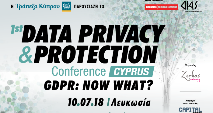 Η προστασία και η βέλτιστη αξιοποίηση των δεδομένων που οι οργανισμοί έχουν στη διάθεσή τους, βρίσκεται στο επίκεντρο τoυ πρώτου συνέδριου “Data Privacy &Protection – GDPR: Now what?” που θα πραγματοποιηθεί την Τρίτη 10 Ιουλίου 2018 στη Λευκωσία.