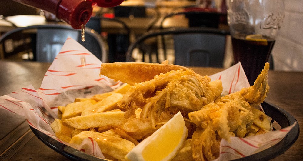 Τα fish and chips είναι το εθνικό φαγητό των Βρετανών, εφάμιλλο με τα δικά μας σουβλάκια.Τα «Chippies», όπως λέγονται τα μαγαζιά που σερβίρουν τηγανητό παναρισμένο μπακαλιάρο με τηγανητές πατάτες, είναι σε λογική fast food και η καθημερινή κατανάλωση του αγαπημένου πιάτου των Βρετανών είναι τεράστια.