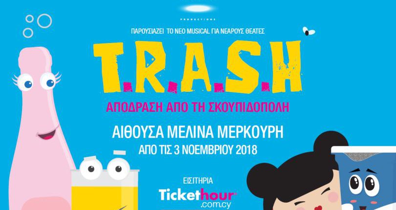 Ο Άλεξ Παναγή, η Κατερίνα Χριστοφίδου και ο Σταύρος Σταύρου υπογράφουν γι άλλη μια φορά τη νέα παραγωγή της Silver Spotlight Productions για νεαρούς θεατές, που θα κάνει πρεμιέρα στις 3 Νοεμβρίου 2018 στην Αίθουσα “Μελίνα Μερκούρη” για περιορισμένο αριθμό παραστάσεων. Η ζωντανή ορχήστρα, τα αυθεντικά τραγούδια, το άφθονο γέλιο και η συγκίνηση, τα σκηνικά και τα κουστούμια, οι εντυπωσιακοί φωτισμοί και τα εφφέ αλλά και το προσεγμένο κάστιγκ από ταλαντούχους ηθοποιούς-τραγουδιστές, που δίνουν τα πάντα για την ποιοτική ψυχαγωγία των νεαρών μας θεατών, υπόσχονται να κάνουν το “T.R.A.S.H” το πιο πολυσυζητημένο μουσικοθεατρικό event της χρονιάς.