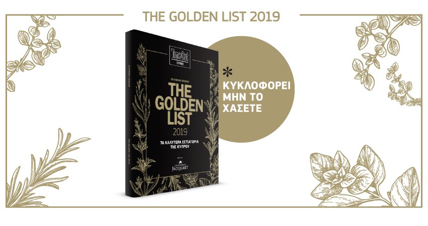 Κυκλοφορεί η πολυτελής, ετήσια έκδοση The Golden List 2019 με τα καλύτερα εστιατόρια της Κύπρου. H «Βίβλος» των κορυφαίων εστιατορίων της Κύπρου περιλαμβάνει έναν λεπτομερή, πολυτελή οδηγό για τους λάτρεις της γαστρονομίας.