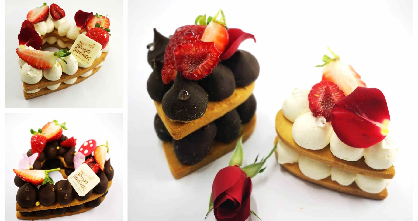 Εκτός από τις πρωτότυπες κατά παραγγελία τούρτες, στο σχέδιο και στη γεύση της επιλογής σας, σε πέραν των 150 γευστικών συνδυασμών, το «Άρωμα Βανίλιας» προτείνει για την ημέρα των ερωτευμένων, υπέροχες τούρτες σε σχήμα καρδιάς, χειροποίητα σοκολατάκια/τρουφάκια, καθώς επίσης μοναδικές και πρωτότυπες γλυκιές συνθέσεις για δύο. Όλες για να δώσουν το πιο απολαυστικό μήνυμα αγάπης στα αγαπημένα σας πρόσωπα, δημιουργημένες με φρέσκα και άριστης ποιότητας υλικά.