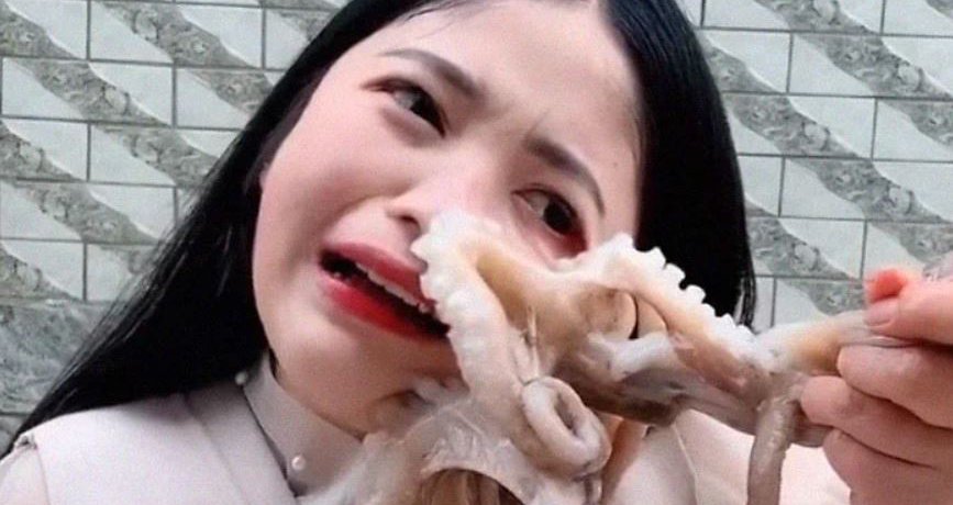 Η νεαρή Κινέζα με ψευδώνυμο Seaside Girl Little Seven, που ανεβάζει τακτικά βίντεο στην πλατφόρμα Kuaishou, προσπάθησε να δαγκώσει το χταπόδι και εκείνο άπλωσε τα πλοκάμια του κολλώντας τις βεντούζες του στο πρόσωπό της. Το διάρκειας 50 δευτερολέπτων βίντεο με την επίθεση του χταποδιού, έγινε αμέσως viral, προκαλώντας ποικίλα σχόλια για τη δικαιολογημένη μάχη που δίνει το μαλάκιο να κρατηθεί στη ζωή.
