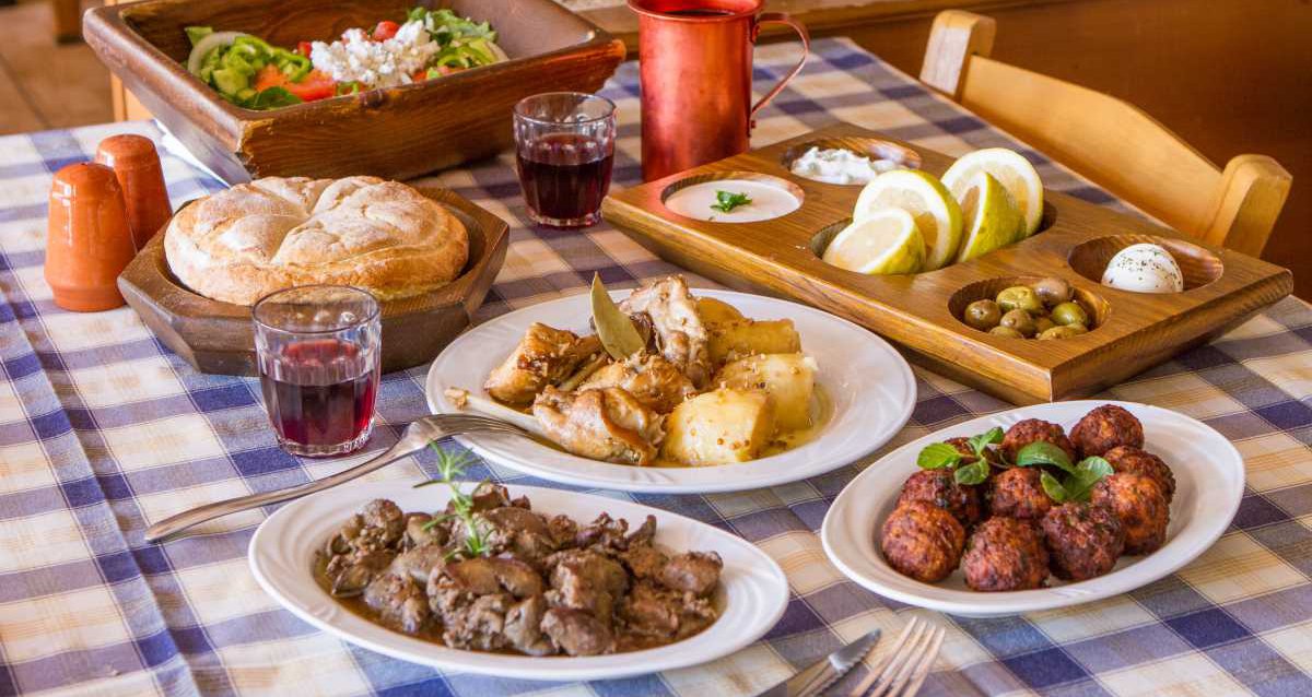 Σε τραπέζι με καρό τραπεζομάντηλο καθισμένοι σε ξύλινες παραδοσιακές καρέκλες θα απολαύσεις μαζί με την παρέα σου κυπριακό μεζέ (€18) που περιλαμβάνει 20 παραδοσιακά πιάτα, ανάμεσά τους είδη σαλάτας, χοιρινό, κοτόπουλο, βοδινό, λουκάνικα και πολλά άλλα.