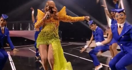 Η τρανστζέντερ τραγουδίστρια εμφανίστηκε με ένα εντυπωσιακό φόρεμα σε κίτρινες αποχρώσεις στο άνοιγμα της αυλαίας του διαγωνισμού και φυσικά την λάτρεψαν.