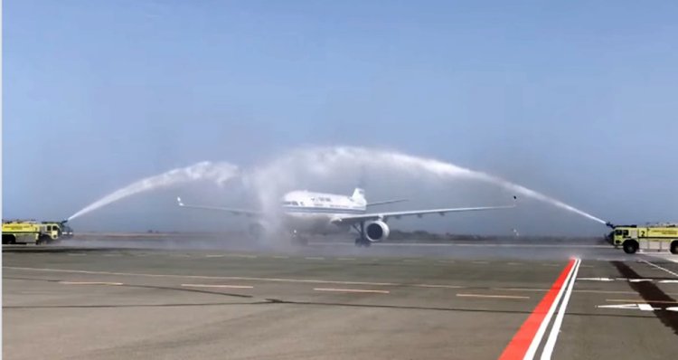 Το αεροσκάφος υποδέχτηκαν δύο πυροσβεστικά οχήματα στο χώρο του αεροδιαδρόμου τα οποία σχημάτισαν αψίδα θριάμβου εκτοξεύοντας νερό. H Κuwait Airways θα εκτελεί προγραμματισμένες πτήσεις από και προς Λάρνακα απο το Κουβείτ δυο φορές την εβδομάδα.