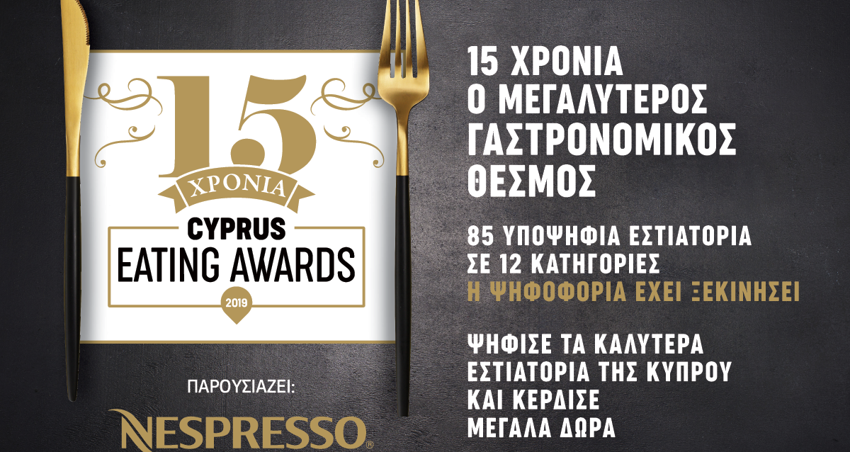 Ο μεγαλύτερος γαστρονομικός θεσμός της Κύπρου, τα Cyprus Eating Awards, που διοργανώνει το Check In Cyprus, γιορτάζουν φέτος 15 χρόνια και διοργανώνονται για ακόμη μία χρονιά, για να επιβραβεύσουν τα κορυφαία εστιατόρια του νησιού. Τα βραβεία παρουσιάζει η Nespresso.