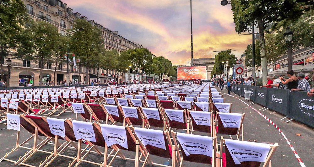 Στη διασημότερη λεωφόρο του κόσμου, ανάμεσα στις δεντροστοιχίες και τις προσόψεις των επώνυμων καταστημάτων, μέσα στη δροσιά του σούρουπου και την ατμόσφαιρα της ιστορίας, οι Παριζιάνοι χαλάρωσαν σε αναπαυτικές ξαπλώστρες και απόλαυσαν μια μοναδική κινηματογραφική εμπειρία με φόντο την Αψίδα του Θριάμβου.