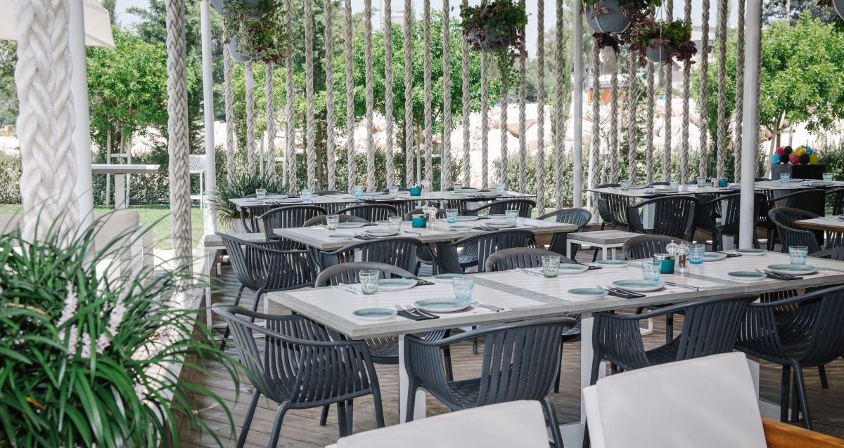 Το μοντέρνο Marina Beach Bar κοσμεί τη χρυσή αμμουδιά της ακτής Peninsula, δημιουργώντας την ιδανική ατμόσφαιρα για φαγητό δίπλα στη θάλασσα.