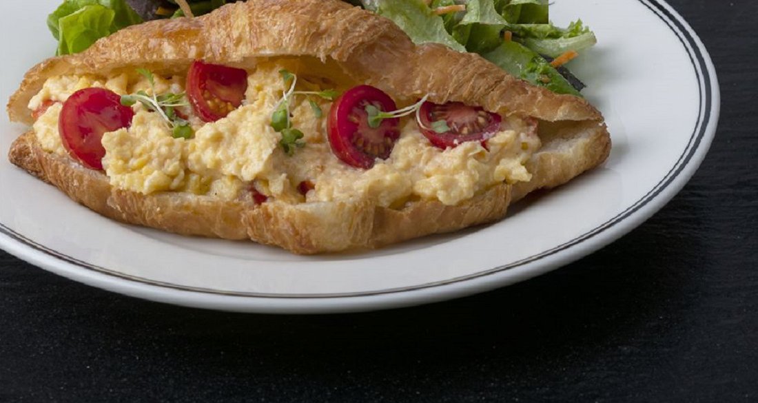 Αφράτα, χτυπητά αυγά (scrambled) μέσα σε ένα φρεσκοψημένο κρουασάν και συνοδευμένο με σαλάτα είναι ένα πιάτο στο οποίο δύσκολα μπορείς να αντισταθείς.