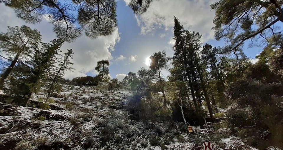 Το Εθνικό Δασικό Πάρκο Μαχαιρά σήμερα πρόσφερε αυτές τις μοναδικές εικόνες. Το δάσος, ο εκδρομικός χώρος Κιονιών, τα πάντα φόρεσαν τα κάτασπρα τους.