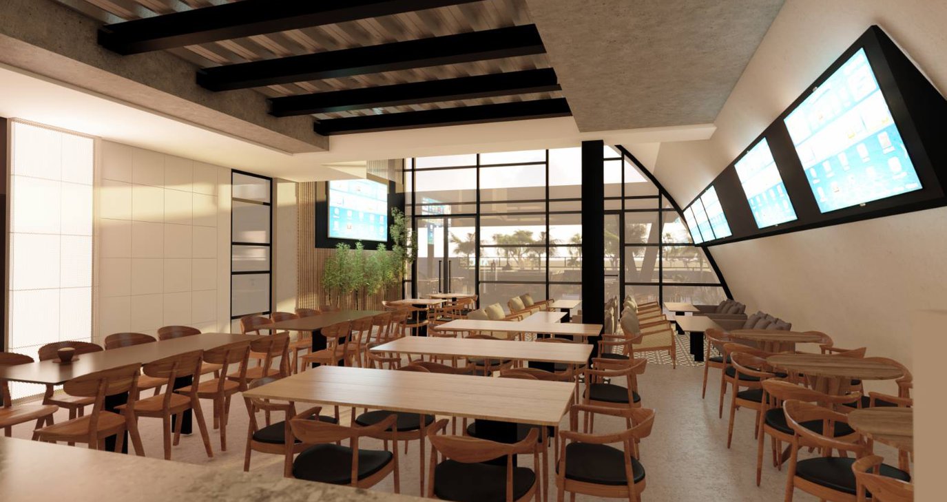 - Θα υπάρχει και η επιλογή του ισόγειου χώρου μας, όπου οι χώροι εστίασης είναι ξεχωριστοί για παιδιά και μεγάλους. Στο εσωτερικό χώρο του εστιατορίου μας θα υπάρχουν οθόνες οι οποίες θα είναι συνδεδεμένες με το χώρο των τραμπολίνων από όπου θα μπορείτε να παρακολουθείτε την αρενα. Επίσης θα υπάρχει και τραπέζι Shuffleboard, για παιχνίδι και χαλάρωση!