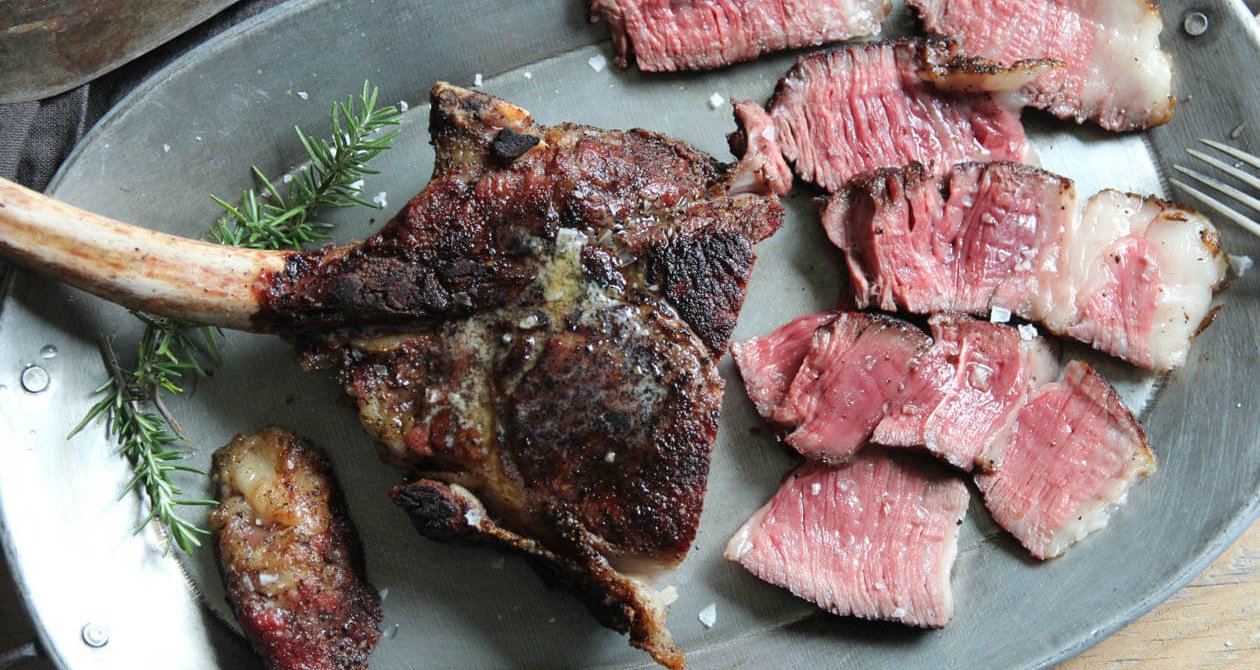 Παρά ταύτα δεν απαιτεί κάποιο ιδιαίτερο ψήσιμο. Θα το ψήσετε όπως ψήνετε τα rib-eye σας ή τις σπαλομπριζόλες σας, στη σχάρα, στα κάρβουνα ή και στο φούρνο. Θα επιμείνω, όμως, πως λόγω του μεγέθους του, χρειάζεται να «σταθεί», για 10-15 λεπτά, αφότου το απομακρύνετε από τη φωτιά, για να μεταφερθεί η θερμοκρασία από το κόκκαλο μέχρι την καρδιά του φιλέτου, επιτρέποντας του να παραμείνει ζουμερό, ακόμα κι όταν θα το έχετε κόψει σε φετούλες, όπως θα κόβατε μια ταλιάτα. Ένα «καρυδάκι» βούτυρο που θα λιώσει πάνω του και λίγος ανθός αλατιού είναι τα κατάλληλα αρτύματα που θα αναδείξουν ακόμα και για αυτή τη θηριώδη μπριζόλα των… Flintstones.