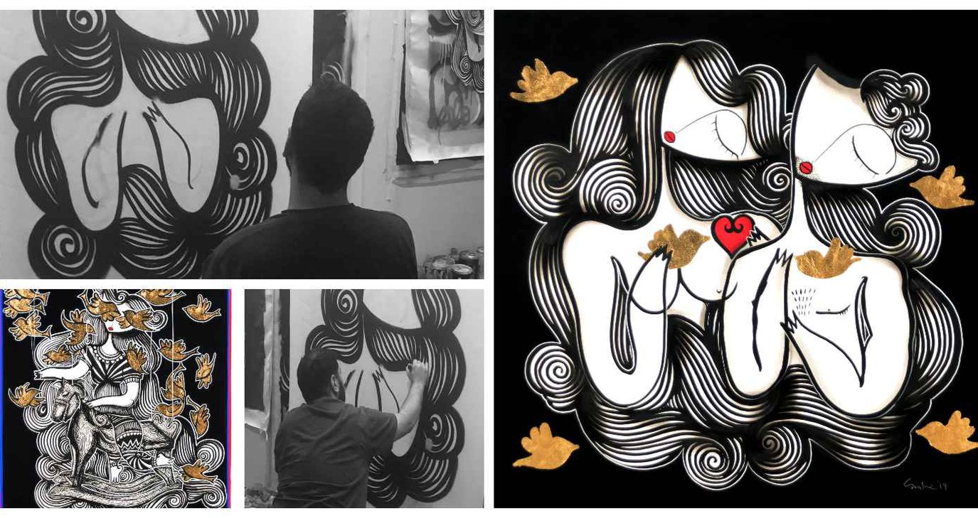 Στην δουλειά του καλλιτέχνη, βλέπουμε πολύχρωμα έργα με κυρίαρχα τα τρία βασικά χρώματα, κόκκινο, κίτρινο και μπλε, και φόντο το μαύρο! Τα έργα αυτά έχουν δημιουργηθεί με ακρυλική gouache σε ξύλο ή καμβά, με την προσθήκη κολάζ ή χρυσού φύλλου, διατηρώντας τα έντονα περιγράμματα και το «δυναμικό» στυλ του καλλιτέχνη. Η έκθεση αυτή εστιάζεται στις περιπετειώδεις ανθρώπινες σχέσεις, είτε αυτές προκύπτουν μεταξύ ατόμων του ίδιου ή διαφορετικού φύλου, ή της εύθραυστης σχέσης με τον εαυτό μας.