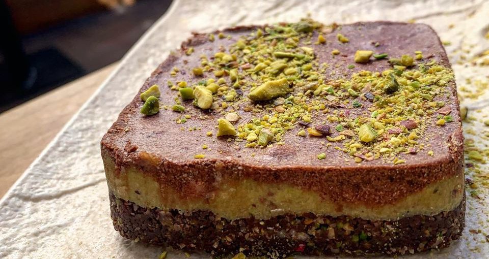 Διότι το αγαπημένο brunch spot Mingle, φτιάχνει αυτή τη σοκολατένια τάρτα πιστάτσιο από υλικά χωρίς καθόλου γλουτένη με γάλα καρύδας, maple syrop και κακάο.
