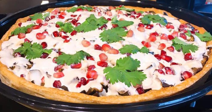 Τι λες για νόστιμη μελιτζανόπιτα με σως από ταχίνι και ρόδι;