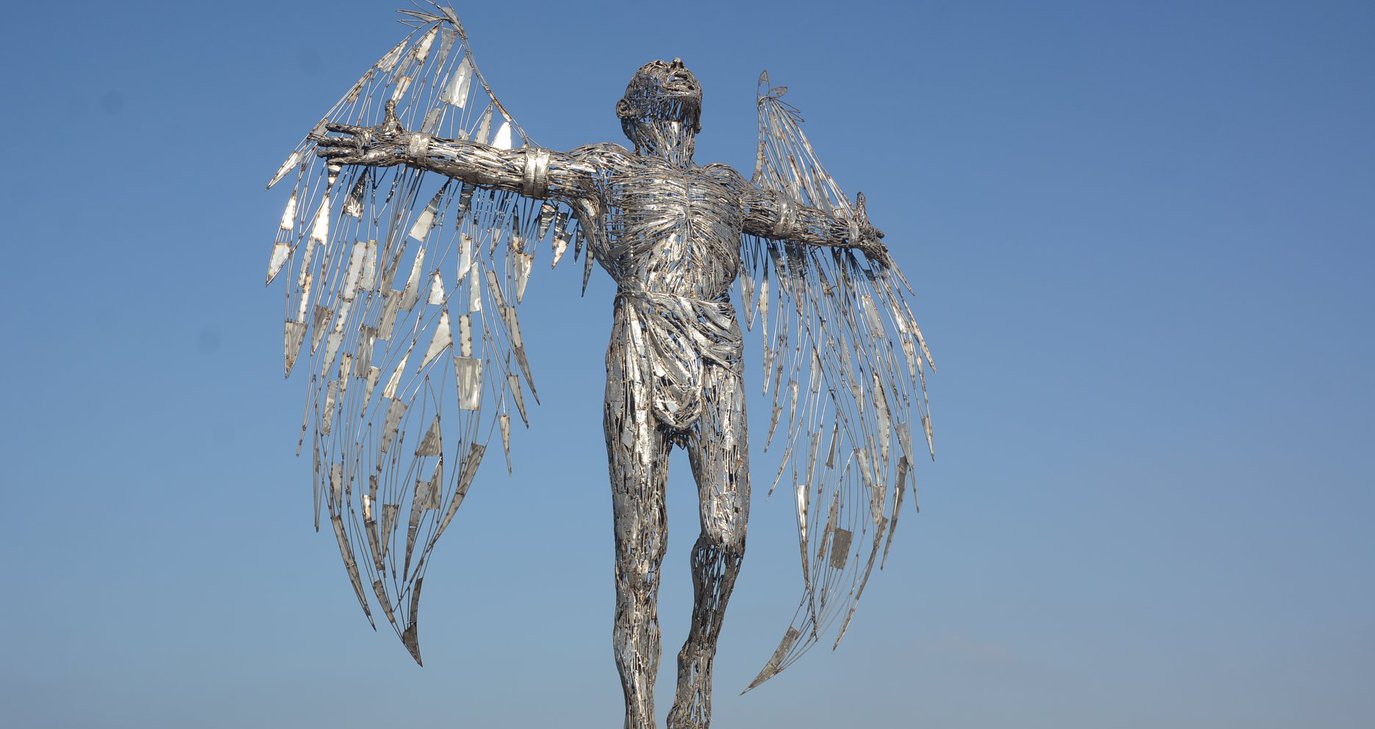 To εκθαμβωτικό υπαίθριο γλυπτό «ΙΚΑΡΟΣ» που εμπνεύστηκε και φιλοτέχνησε κατά τη διάρκεια της Α΄ φάσης του 7ου Διεθνούς Συμποσίου Γλυπτικής Αγίας Νάπας, ο Κύπριος καλλιτέχνης Πανίκκος Σπανός τοποθετήθηκε χθες Τετάρτη 15 Ιουλίου στην είσοδο του παραλιακού πεζόδρομου της πόλης.