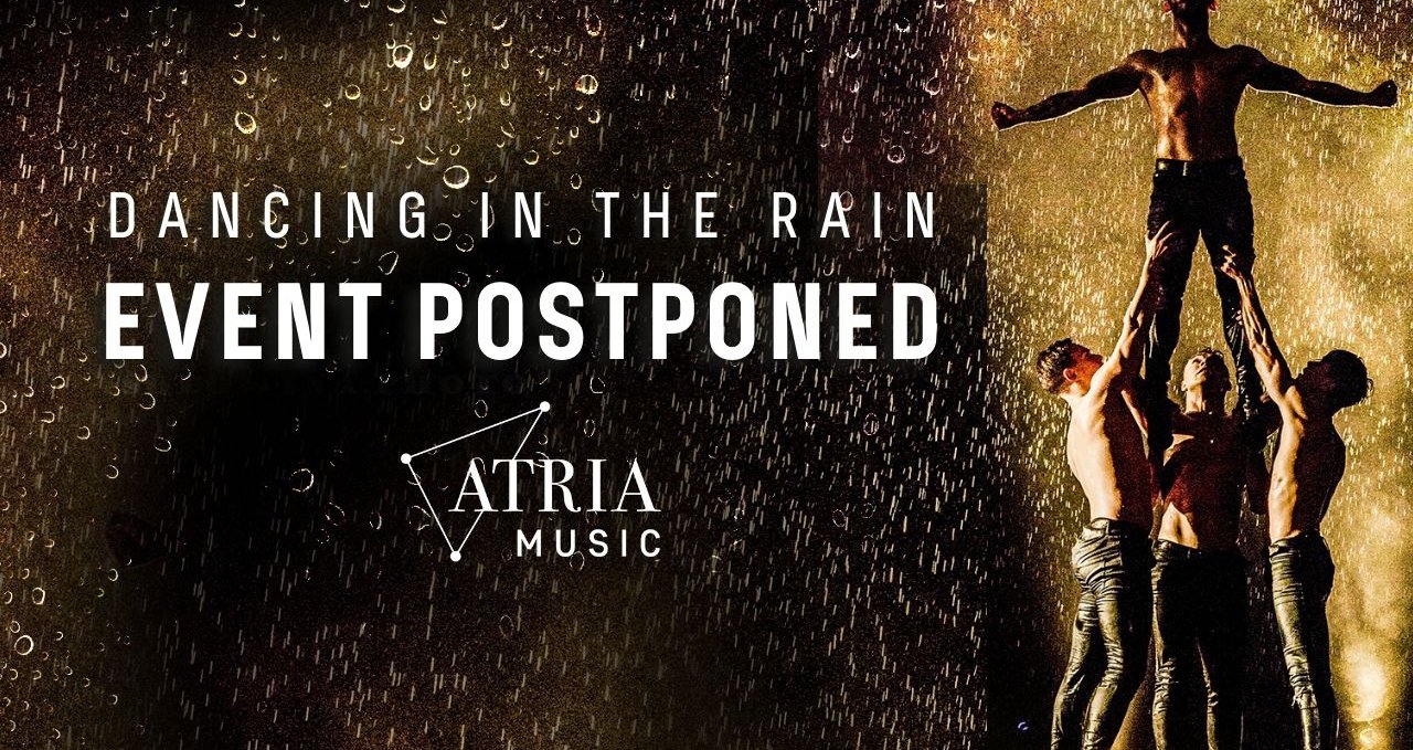 H Atria Music ανακοινώνει την αναβολή των παραστάσεων «Dancing in The Rain», λόγω της νέας έξαρσης των κρουσμάτων του κορωνοϊού στην Κύπρο και της απόφασης του Υπουργείου Υγείας να περιορίσει σημαντικά τον αριθμό των θεατών στο εσωτερικό των θέατρων.