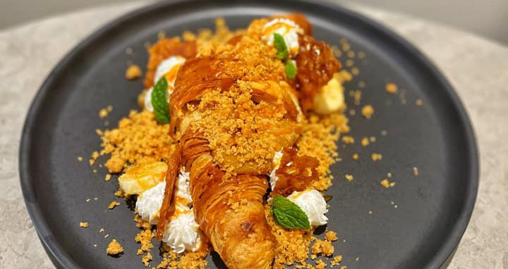 Το διάσημο και πολύ νόστιμο μαγαζί Nocciola Sweets + More στη Λευκωσία σού φτιάχνει μόνο για αυτήν την εβδομάδα: Banoffee croissant γεμιστό με κρέμα Dulce de leche, σάλτσα με καραμέλα, μπισκότο και μέλι.