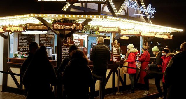 Ενώ οι ξακουστές υπαίθριες χριστουγεννιάτικες αγορές είχαν ήδη απαγορευτεί για τη φετινή χρονιά, πολλοί μπορούσαν ωστόσο να απολαύσουν το Gluehwein κατεβάζοντας τη μάσκα τους στις υπαίθριες καντίνες.