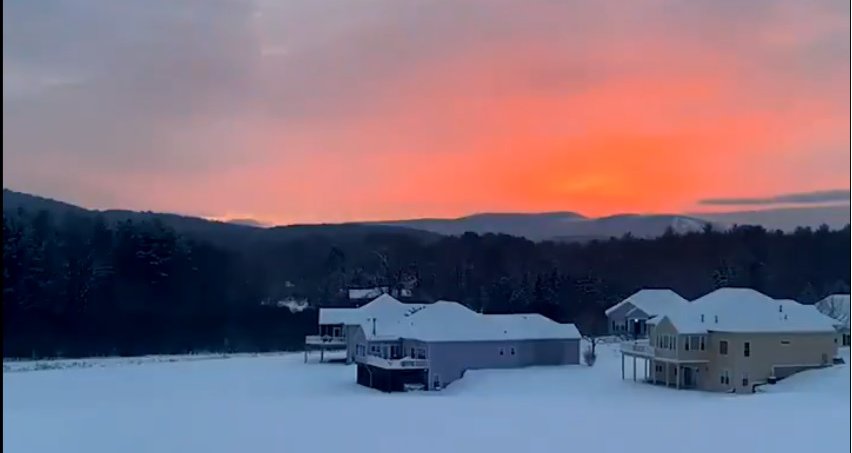 Την παράσταση όμως από το λευκό τοπίο κλέβει ο πορτοκαλοκόκκινος ουρανός στο ηλιοβασίλεμα που αλλάζει εντελώς το πάλλευκο τοπίο, προσδίδοντας πλούσιο χρώμα και φως πίσω από τα πυκνά σύννεφα που διαλύονται σιγά-σιγά. Γι’ αυτό και ο τίτλος της αμερικανικής ανάρτησης είναι «Μάτια στον ουρανό».