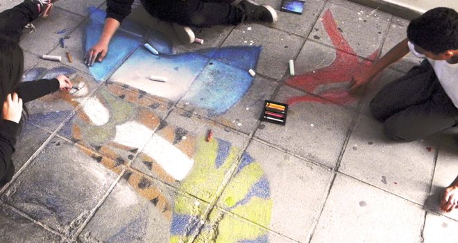 Η εικαστική δράση θα πραγματοποιηθεί στις 29 Νοεμβρίου 2013 από τις 08.30-13.00 σε ανοικτούς χώρους, πεζοδρόμια και πλακόστρωτα όπου οι μαθητές της Μέσης Γενικής Εκπαίδευσης, με μοναδικό μέσο τις κιμωλίες, θα δημιουργήσουν εφήμερα έργα τέχνης. Η καλλιτεχνική δράση θα εμπλουτιστεί με τη συμμετοχή μουσικών και χορευτικών συγκροτημάτων από διάφορα σχολεία της κάθε Επαρχίας.