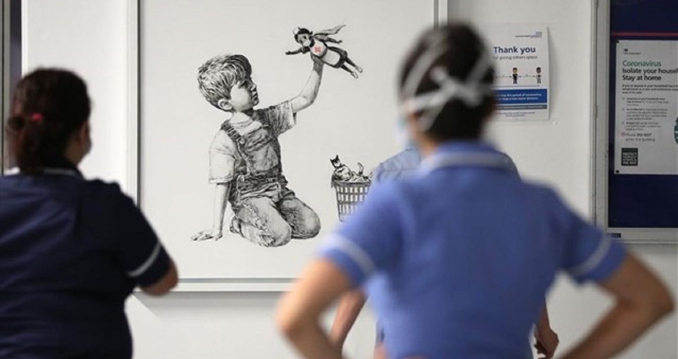 Ένας πίνακας ζωγραφικής που δείχνει ένα μικρό αγόρι να σηκώνει μια κούκλα νοσοκόμα-υπερήρωα, με το χέρι τεντωμένο και φορώντας κάπα, κάνει το γύρο του διαδικτύου , τον τελευταίο καιρό, ενόψει και της πανδημίας του κορωνοϊού και συγκινεί μικρούς και μεγάλους.