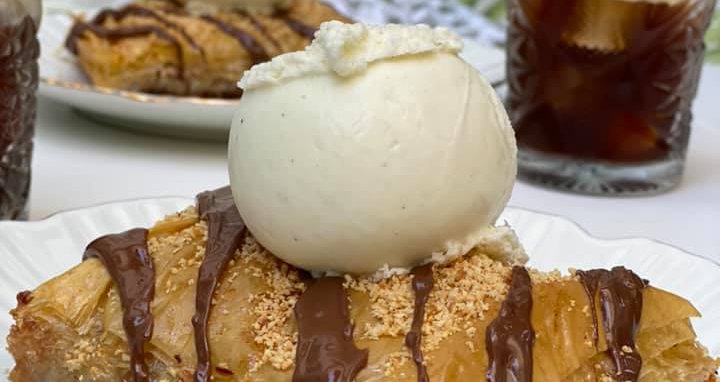 Αυτό το Σαββατοκύριακο θα απολαύσεις το απόλυτο γλυκό πιάτο, Nutella baklava. Μπακλαβάς με φουντούκι και αμύγδαλο με στρώση Nutella, καλυμμένο με σκόνη φουντουκιού, που σερβίρεται με παγωτό βανίλια.