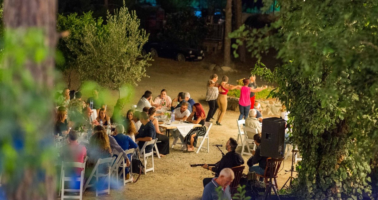 Οι βραδιές πραγματοποιούνται στον ολόφυτο κήπο του οινοποιείου στο Λυθροδόντα!