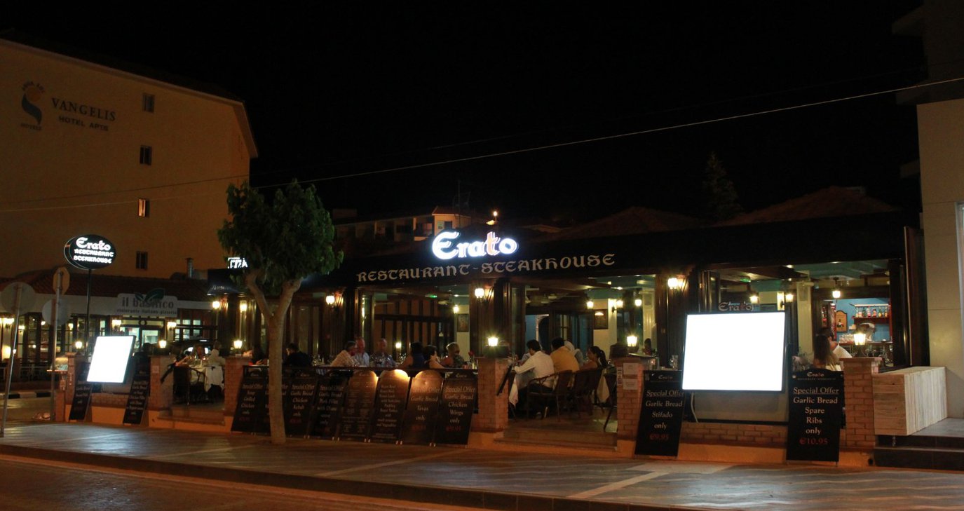 Το Erato Restaurant & Steakhouse θα το βρεις στ ην καρδιά του κοσμοπολίτικου Πρωταρ ά. Πρόκειται για ένα πολύ προσεγμένο εστιατόριο, το οποίο προσφέρει εξαιρετικά πιάτα και άψογη εξυπηρέτηση, σε πολύ καλές τιμές.