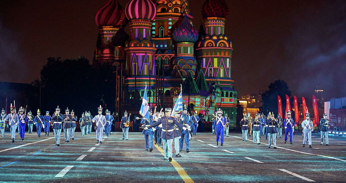 Η ελληνική στρατιωτική ορχήστρα «Θησέας» αφιέρωσε την εμφάνισή της στον συνθέτη, ενώ τα πορτρέτα του προβλήθηκαν πάνω στην ελληνική σημαία με φόντο το Κρεμλίνο.