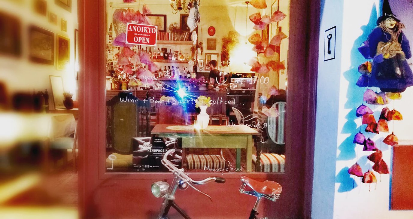 Αυτό το γουστόζικο καφενεδάκι που η ιδιαίτερη, άκρως καλλιτεχνική διακόσμησή του το κάνει να μοιάζει με γκαλερί τέχνης, έχει αυτό το κάτι, αυτή τη μυστικιστική διάθεση που ακόμα και για κάποιον που έχει ξαναπάει, πάντα θα ανακαλύπτει και ένα νέο στοιχείο που θα τον εντυπωσιάσει από την αρχή.