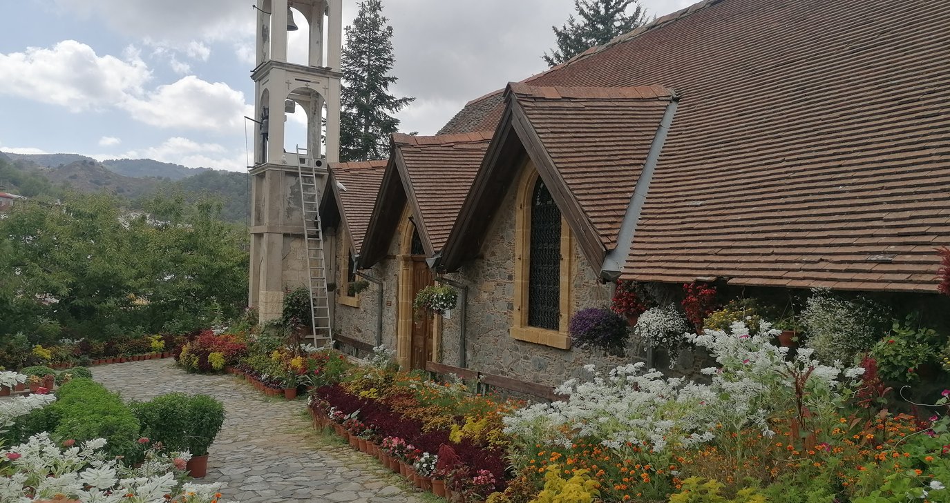 Ωστόσο, αυτό που θα τον εντυπωσιάσει επίσης είναι και κατάφυτη αυλή της, η οποία είναι στολισμένη με 3000 γλάστρες με πολύχρωμα λουλούδια που τα φροντίζει ο πάτερ Γεώργιος Κούρρης.