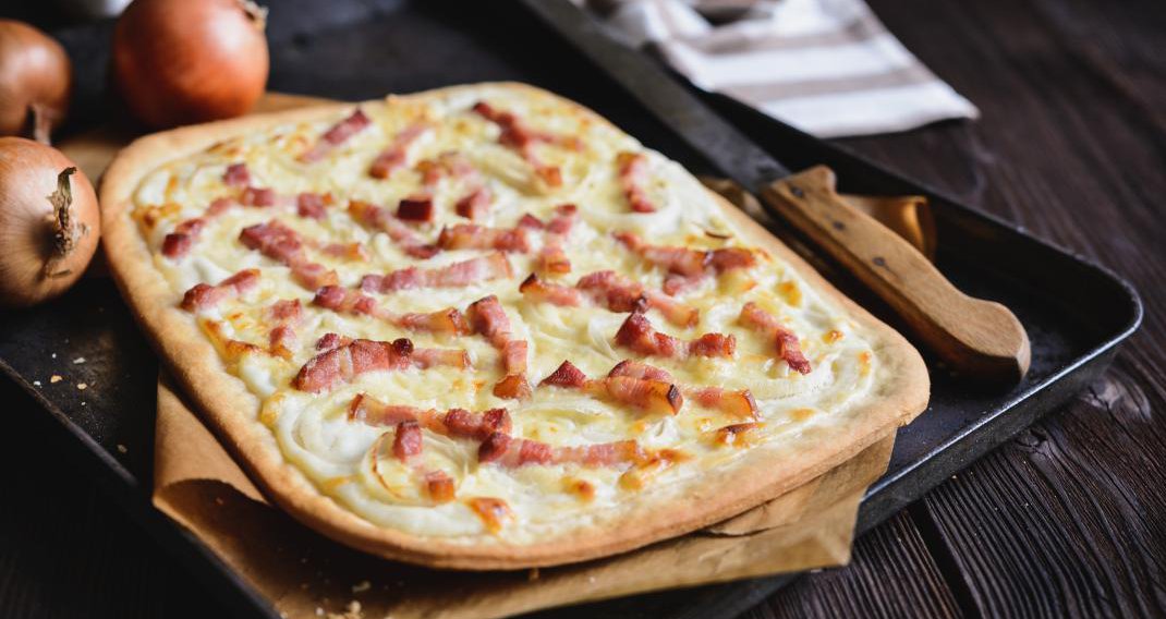 Πρόκειται για μια τραγανή τάρτα που θυμίζει πίτσα και αποτελεί ένα από τα πιο αγαπημένα παραδοσιακά φαγητά του Στρασβούργου. Η απίθανη αυτή συνταγή γεννήθηκε στην ευρύτερη περιοχή της Αλσατίας από αγρότισσες νοικοκυρές.